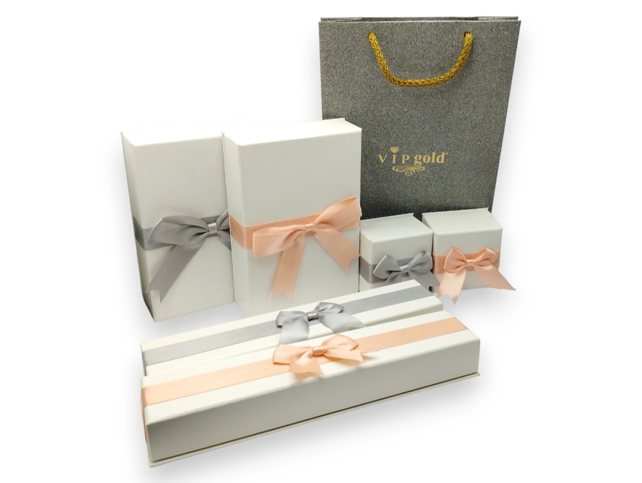 Náhrdelník a náramok ozvláštňujú prívesky vykladané zirkónmi a aplikácie v tvare brúsených guličiek kombinujúce 3 farby zlata - biele, červené a žlté zlato.