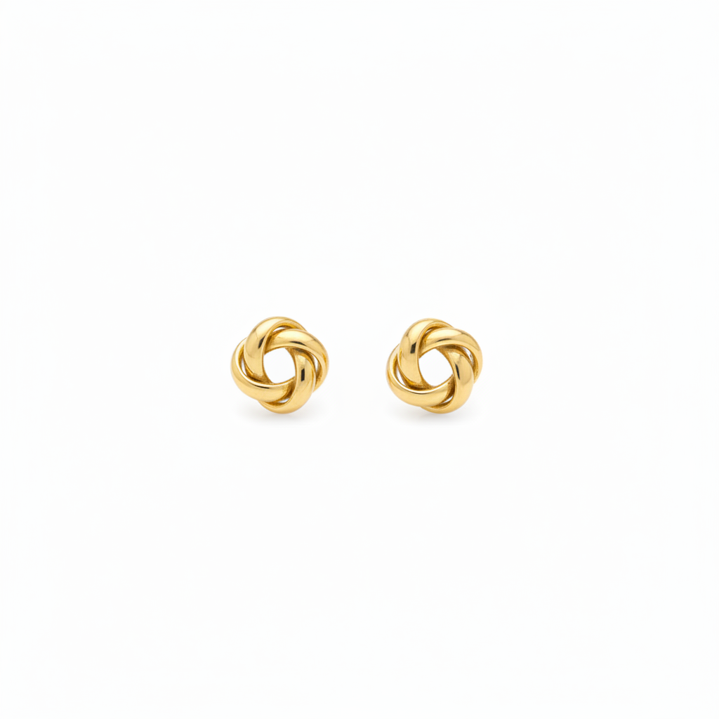 Dámske náušnice v tvare uzlíkov zo 14 karátového žltého zlata.