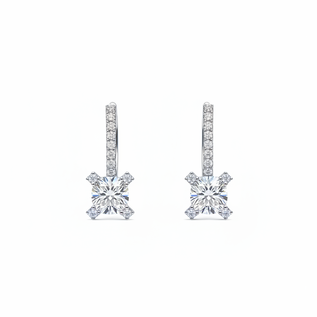 Dámske visiace náušnice Sparkle zo 14 karátového bieleho zlata, doplnené o žiarivé zirkóny.
