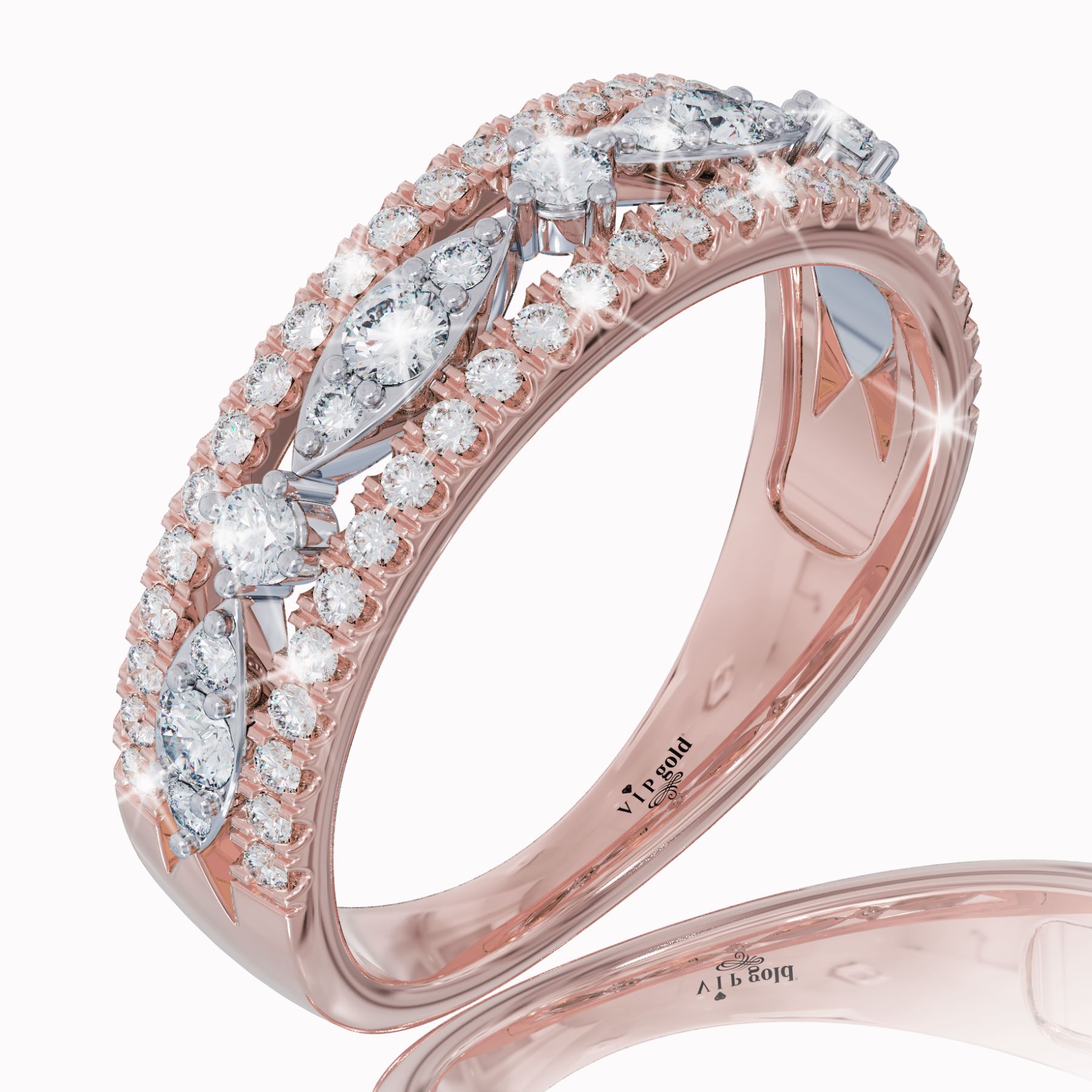 Luxusný model prsteňa v 14 karátovom červenom zlate. Unikátnosť prsteňa vytvárajú žiarivé biele zafíry v briliantovom výbruse.